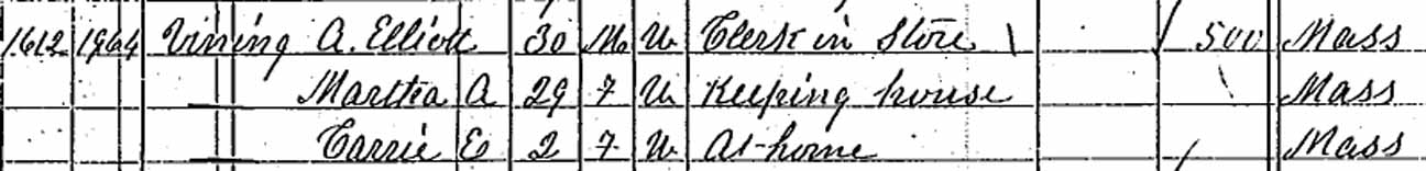 | Carrie E. Vining | 2 | 12 | ? | [living? in separate household] | | |