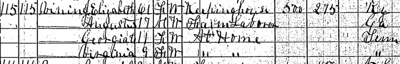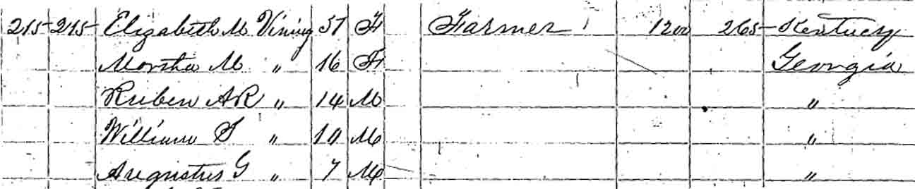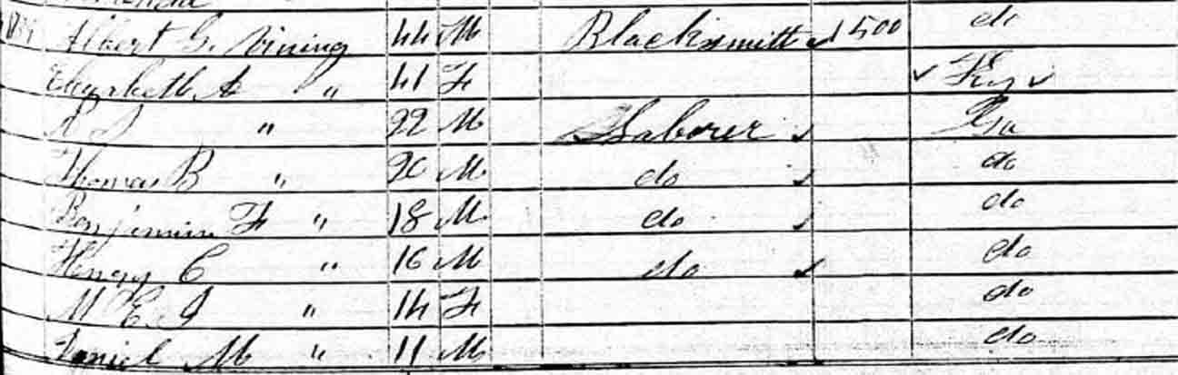 | Henry Clay Vining | M 5–9 | 16 | not living in this household | not living in this household | ? | |