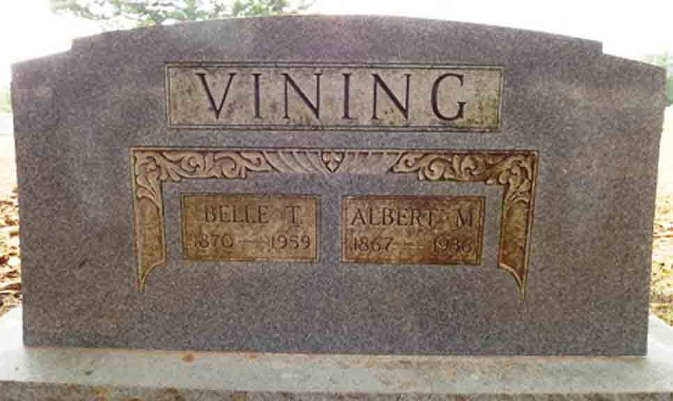 Headstone for Albert Minton Vining and Susan Belle (Tatum) Vining, in Cedar Hill Cemetery, Rusk, Cherokee County, Texas (from Find A Grave):