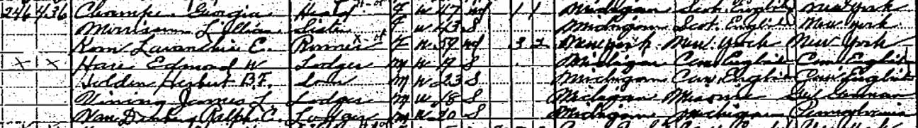 | Edna Vining | 5 | 15 | not living in this household | ? |