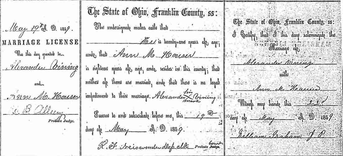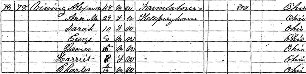 | Ann Mariah (Houser) Vining | 20 | 29 | 39 | ? | ? | ? |