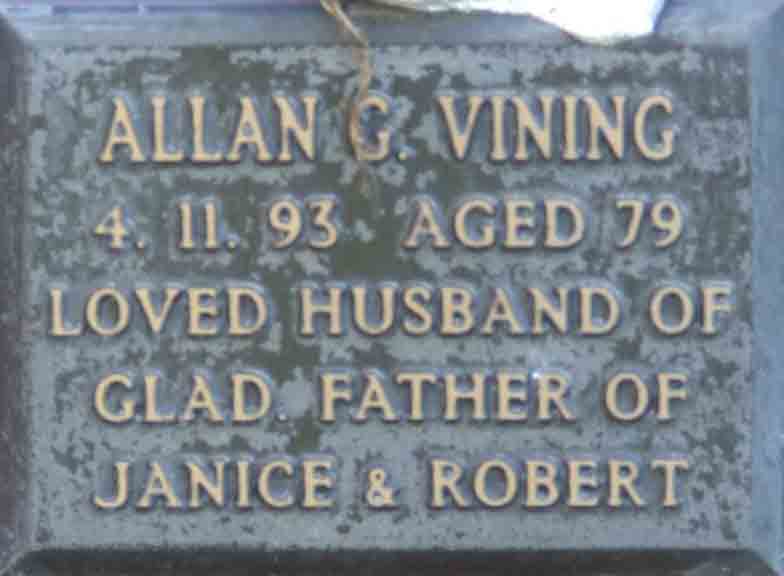 Gravestone for Allan George Vining, in Enfield Memorial Park, Adelaide, South Australia, Australia (from Find A Grave):