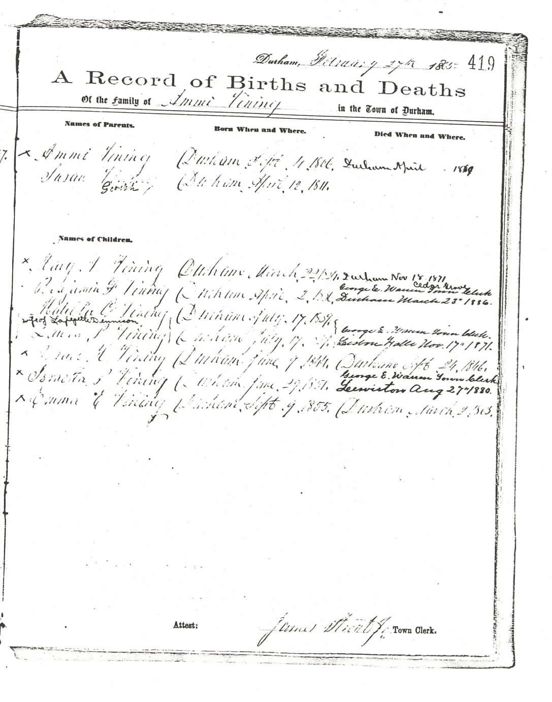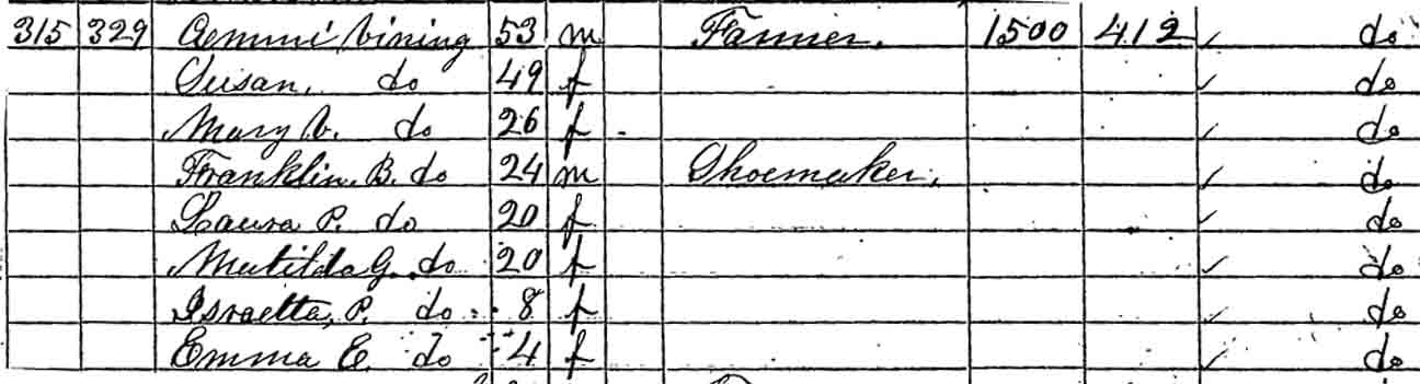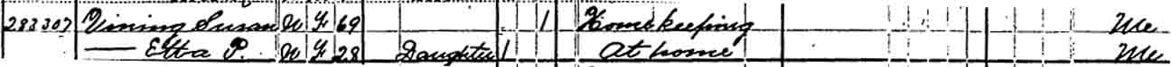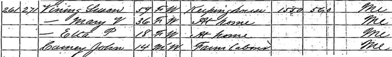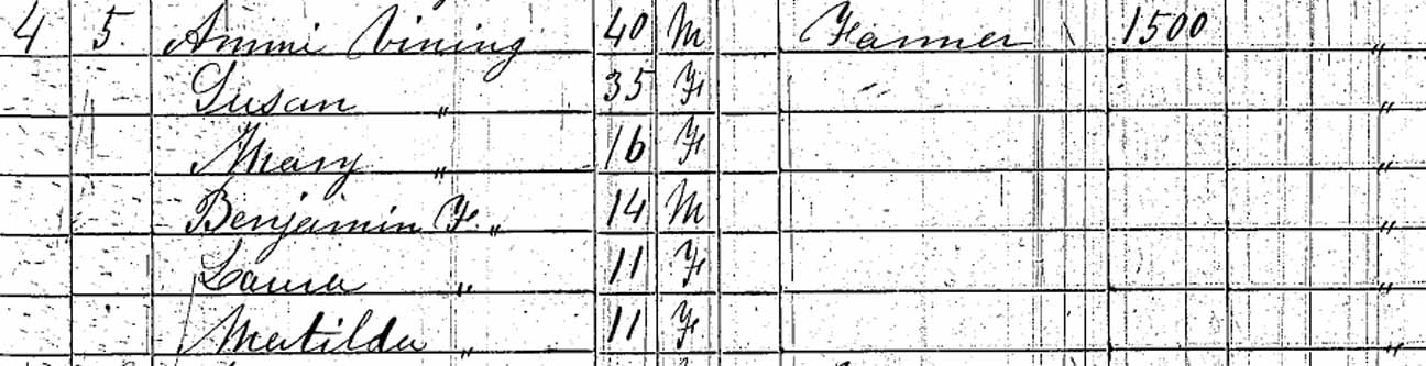 | Matilda G. Vining | F under 5 | 11 | 20 | not living in this household | ? | ? |