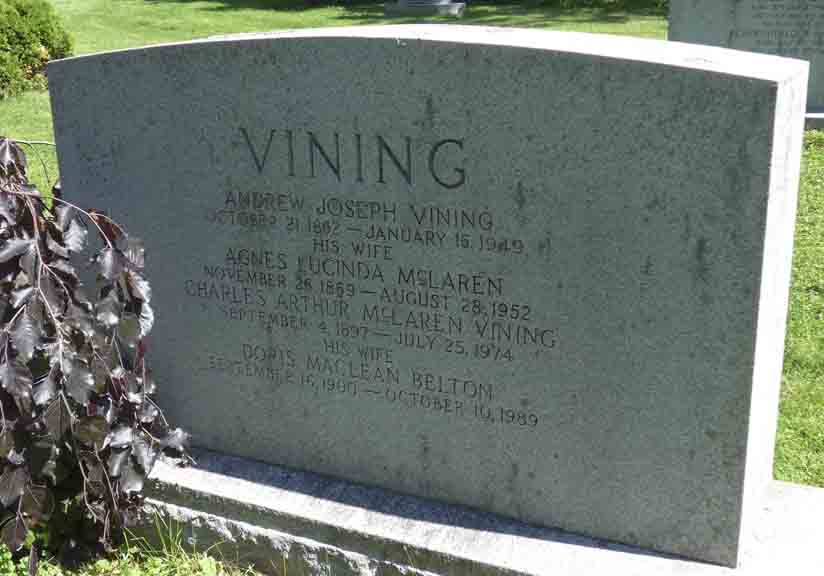 Headstone for Andrew Joseph Vining and family, in Mount Pleasant Cemetery, Toronto, Ontario (from Find A Grave):