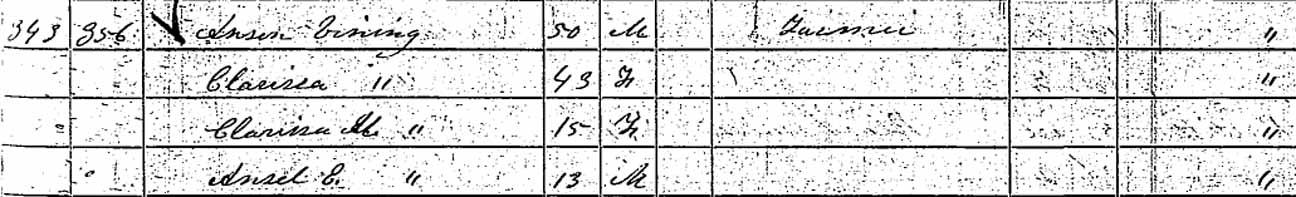 | Clarrissa Mirriam Vining | F 5–9 | 15 | [living? in separate household] | | | |