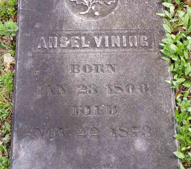 1870 Windsor, Berkshire County, Massachusetts - dwelling 4, family 4. Ansel Emerson Vining, his wife (Mary P.), and his son (Charles E.) were living with his parents in 1870.: