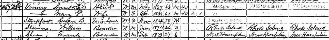 | Frederick J. Vining | | 7 | ? | married and living in separate household | | | |