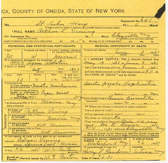 1930 Springfield, Hampden County, Massachusetts - dwelling 48a, family 121. In 1930, Arthur Vining was listed in the “Cohoes and Waterford [New York] Directory For Year Ending August 1930” as “master mechanic 465 Saratoga res 115 Mohawk”.: