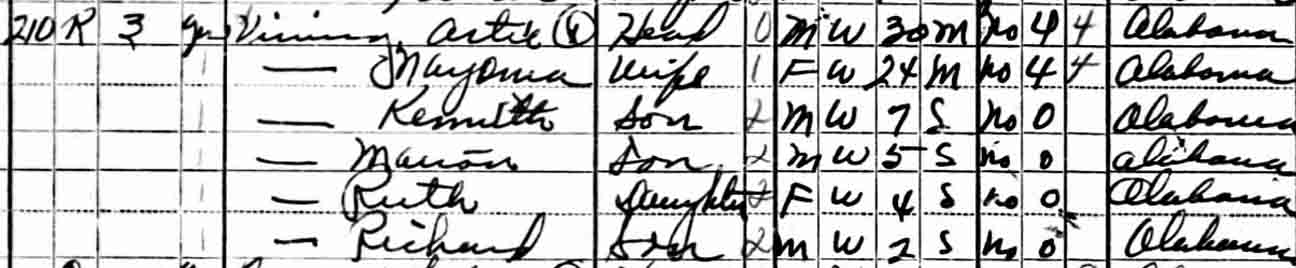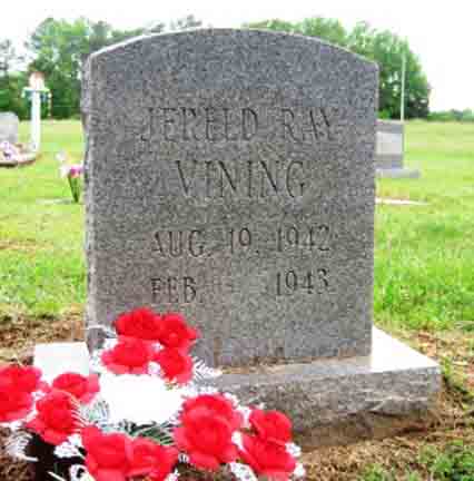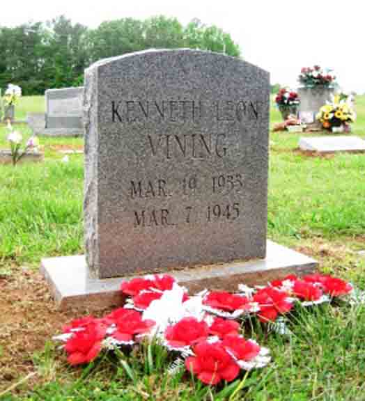 Gravestones for Kenneth Leon Vining and Jereld Ray Vining, sons of Artie Vining and Elenora Nayoma (Hall) Vining, in Mount Pleasant Cemetery, Holland Gin, Limestone County, Alabama (from Find A Grave):
