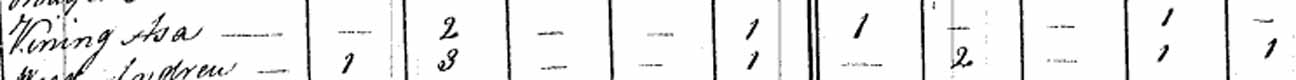 | David Vining | M under 10 | M 10-15 | M 16-25 | M 30-40; married and living in this household | married and living in separate household | | |