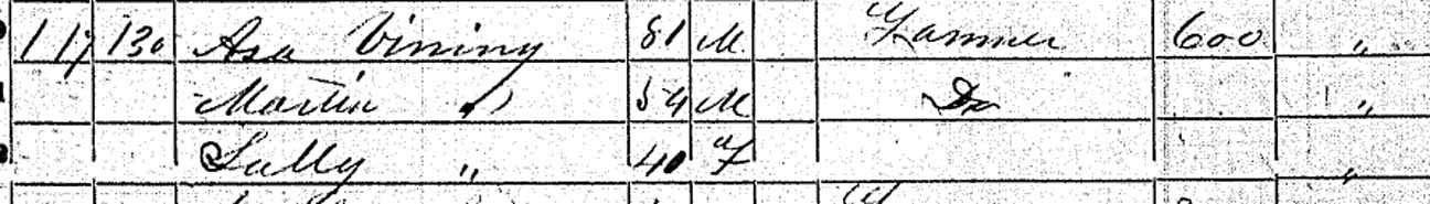 1860 - In 1860 Martin was living in the household of David Vining, his brother.: