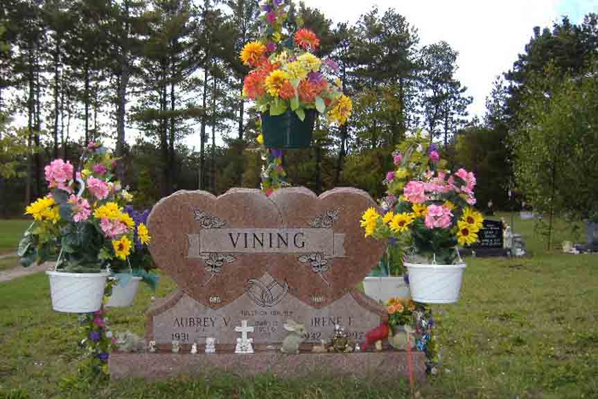 Headstone for Aubrey Vernon Vining and Irene F. (Buczynski) Vining, in Big Prairie-Everett Cemetery, Big Prairie, Newaygo County, Michigan (from Find A Grave):