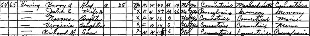 | Norma E. Vining | 5 | 16 | [living? in separate household] | |