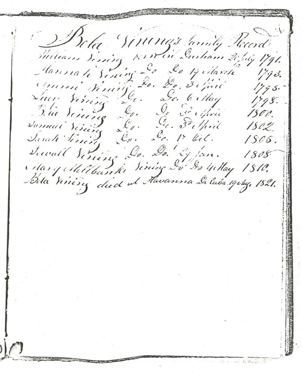 | William Vining | M under 10 | M 16–26 | married and living in separate household | | | |