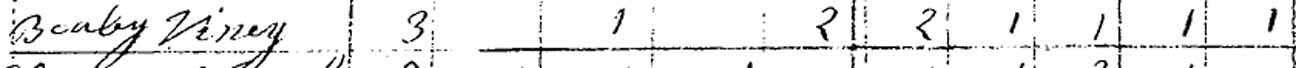 | Hannah Vining | F under 10 | F 16–26 | married and living in separate household | | | |