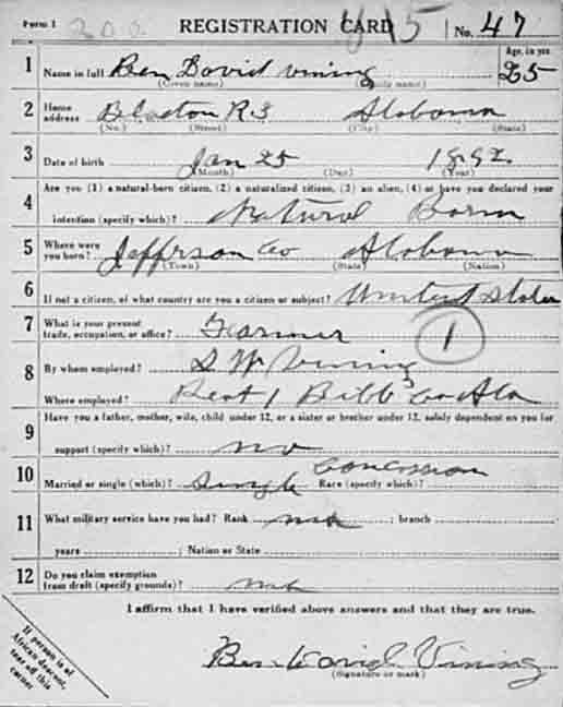 Documentation for Ben David Vining - Bertha Mae Bunn