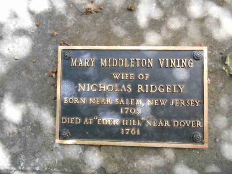 Gravestone for Mary (Middleton) Vining, in Christ Episcopal Church Cemetery, Dover, Kent County, Delaware (from Find A Grave):