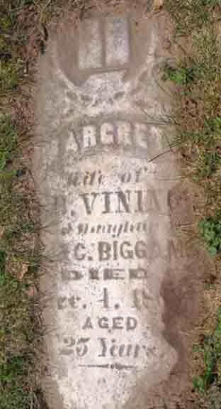 Gravestone for Margaret Ann (Biggam) Vining, in Downer Cemetery, Canton, Wayne County, Michigan (from Find A Grave):