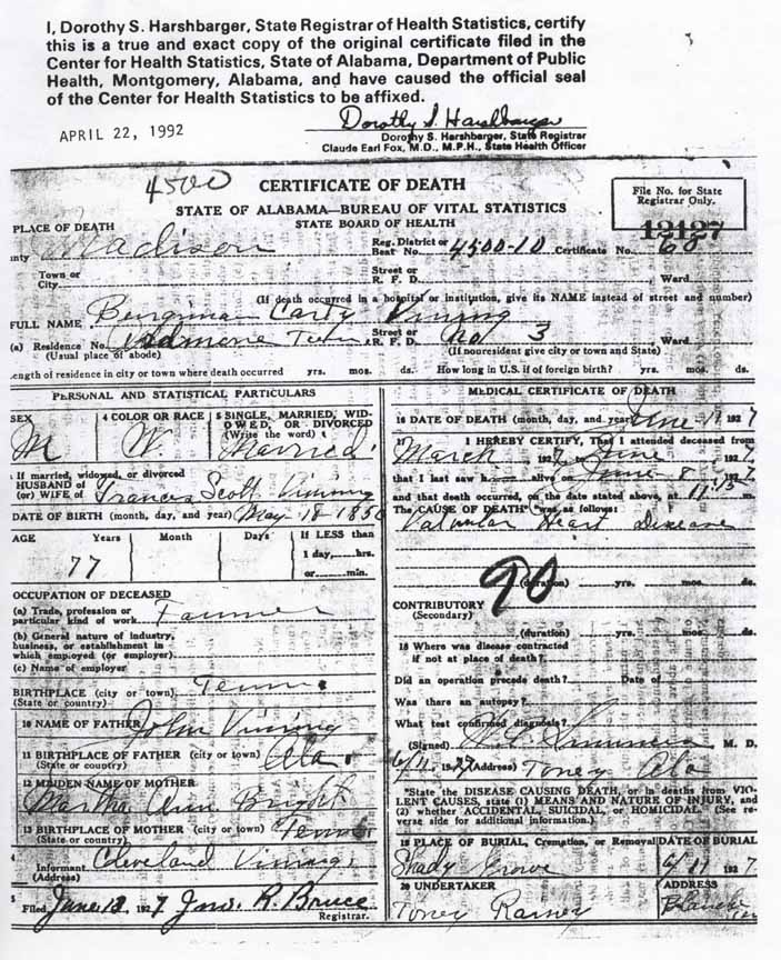 ← Back to Benjamin Carty Vining - Frances Scott
