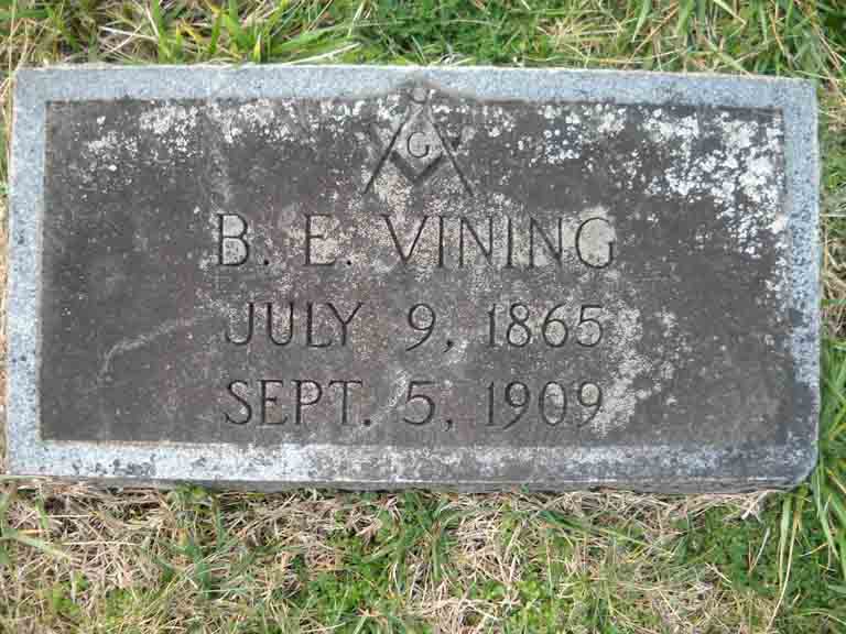 Gravestone for Benjamin E. Vining, in Nathan Anderson Historic Cemetery, Ringgold, Catoosa County, Georgia (from Find A Grave):