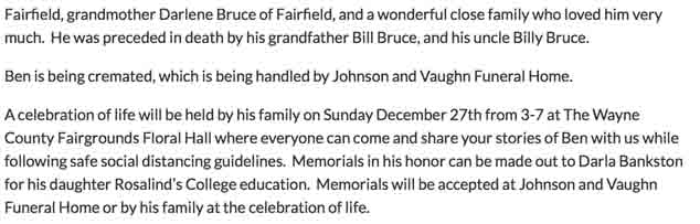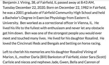 OBituary for Benjamin John Vining (from website of Johnson & Vaughn Funeral Homes):