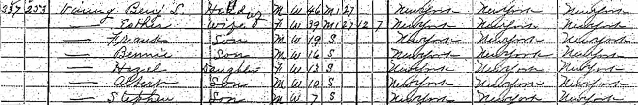 | Hazel May Vining | 1 | 13 | married and living in separate household | |||