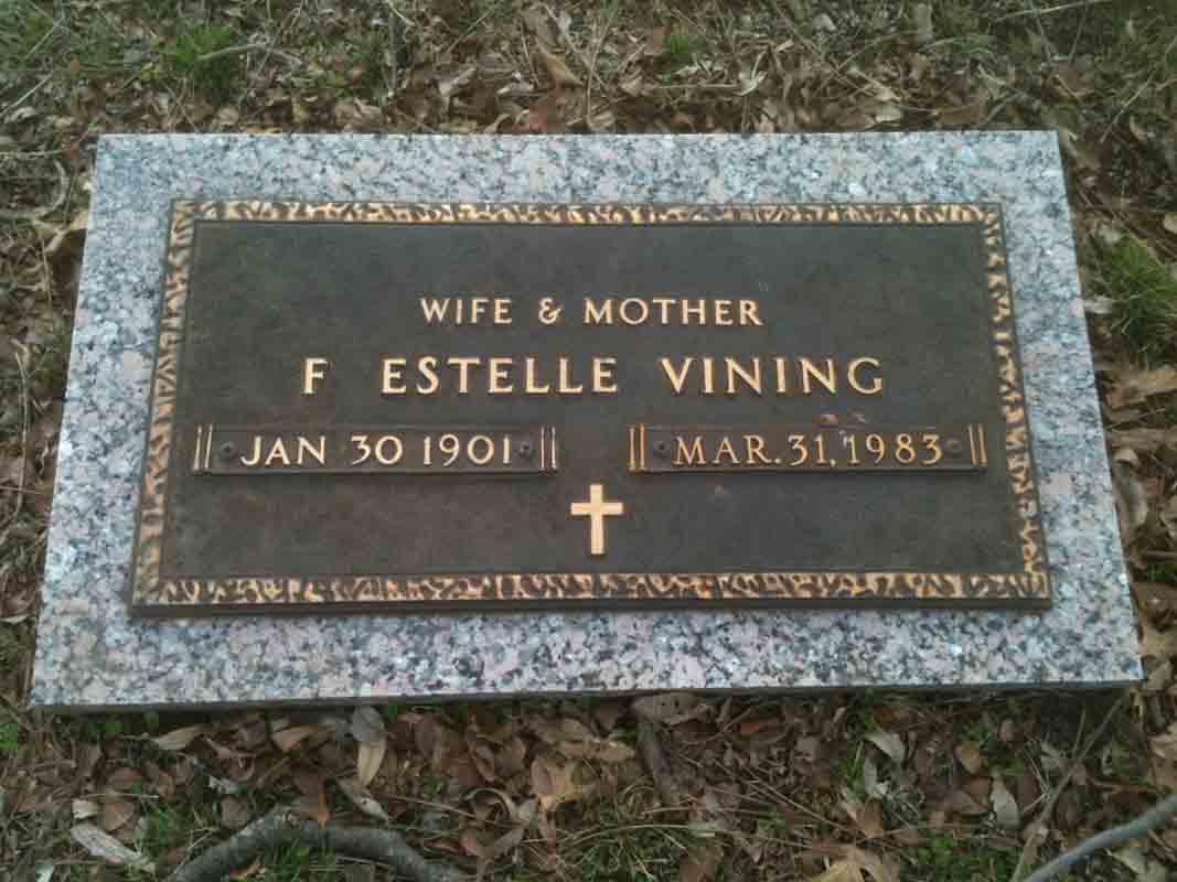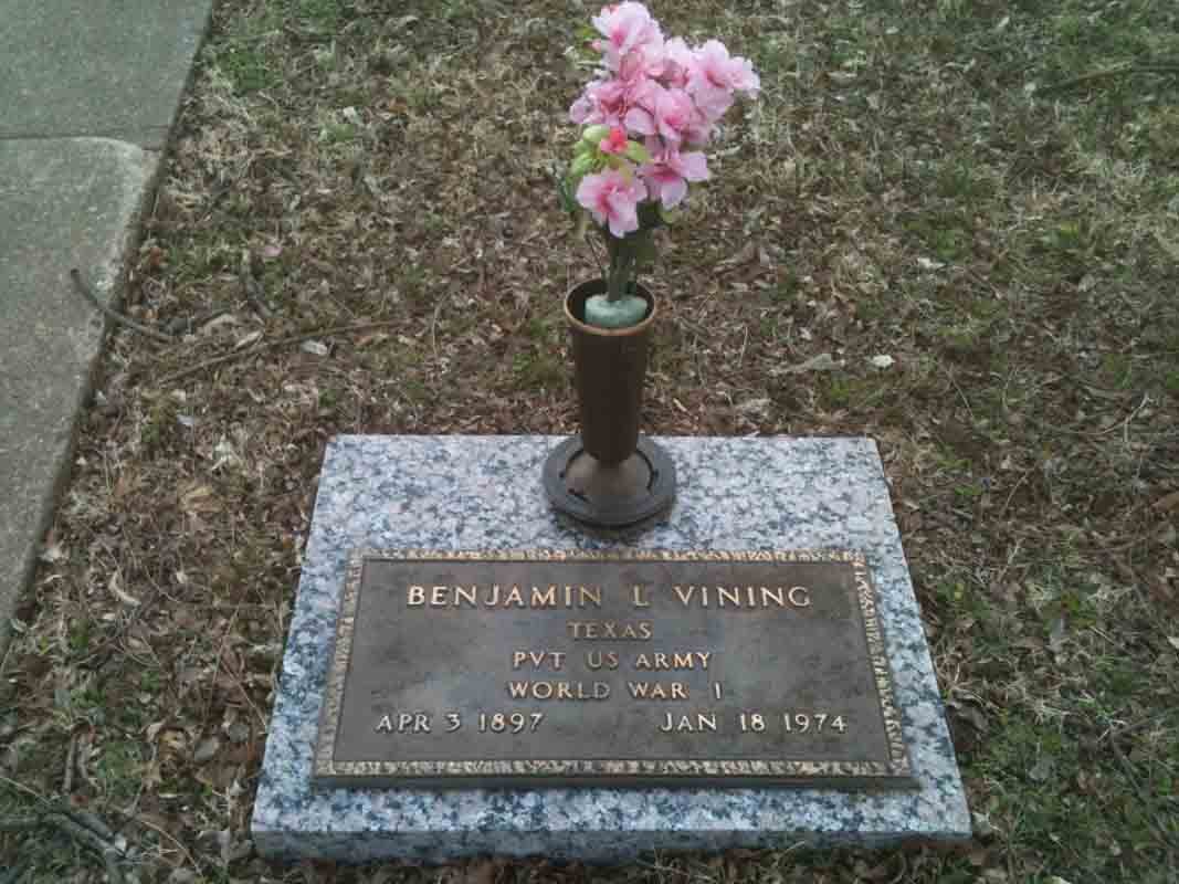 Gravestones for Benjamin Lowery Vining and F. Estelle ([...]) Vining, in Grove Hill Memorial Park, Dallas, Dallas County, Texas (from Find A Grave):
