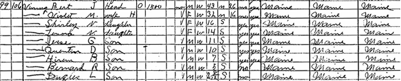 | Shirley Nathalie Vining | 6 | 16 | married and living in separate household |