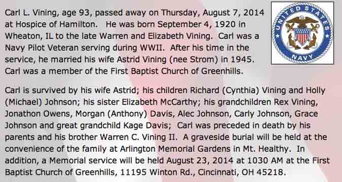 Obituary for Carl Louis Vining: