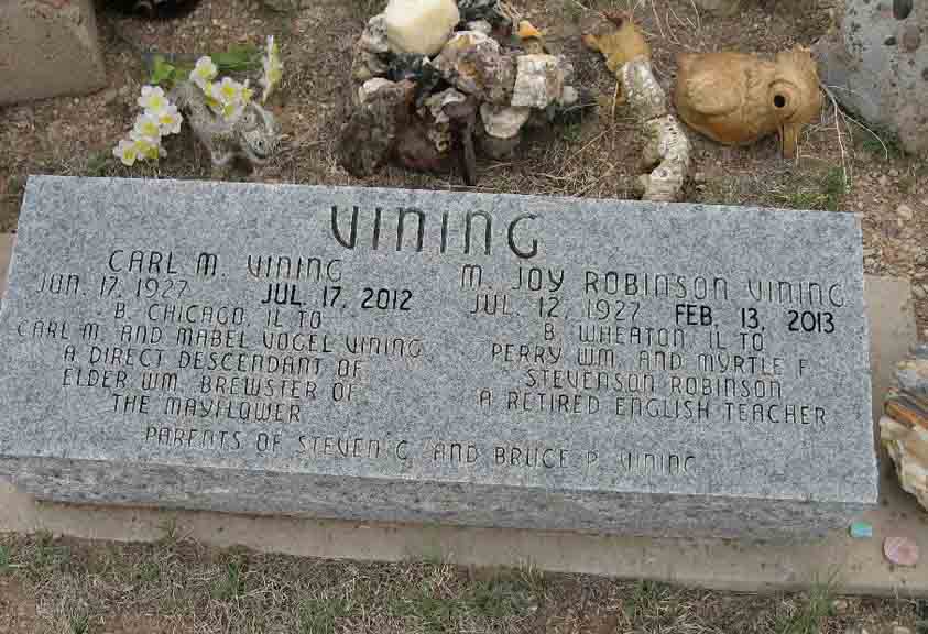 According to his headstone, Carl Merton Vining Jr. is a descendant of Mayflower passenger William Brewster.