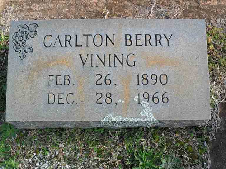 Gravestones for Carlton Berry Vining, in Circle View Cemetery, Social Circle, Walton County, Georgia (from Find A Grave):