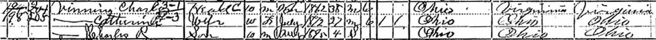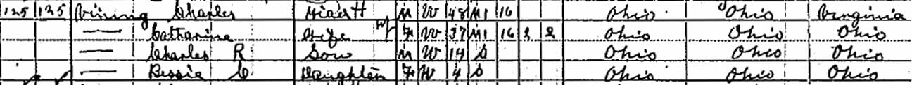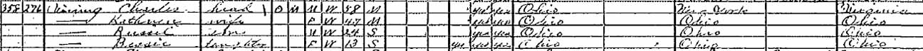There is a discrepancy in the census records (below) about the birthplace of Charles Vining's father—Virginia (1900 census), Ohio (1910 census), or New York (1920 census).