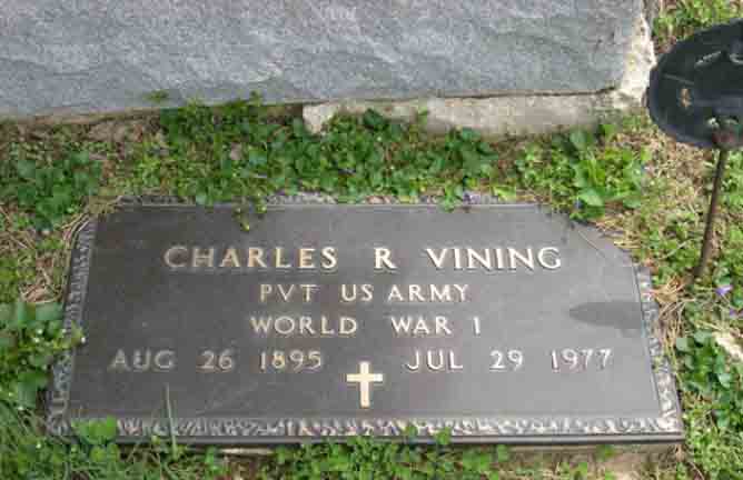Gravestone for Charles Russell Vining, son of Charles Vining and Catharine (Overmyer) Vining, in Harris-Elmore Union Cemetery, Elmore, Ottawa County, Ohio (from Find A Grave):