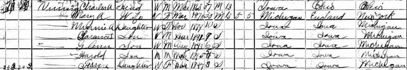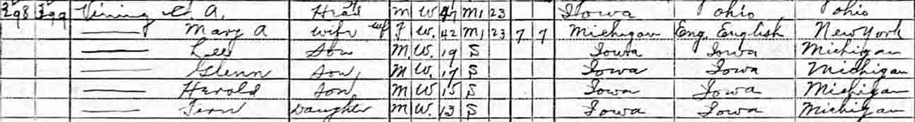 | Clarence Lee Vining | 7 | 19 | married and living in separate household | |||