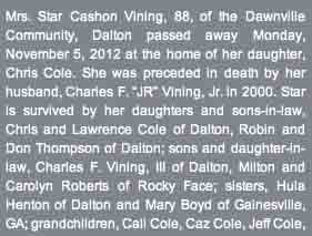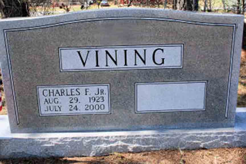 Gravestone for Charles Freeman Vining Jr., in Dawn Rest Cemetery, Dalton, Whitfield County, Georgia (from Find A Grave):