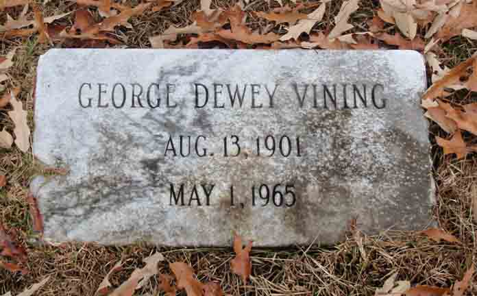 Gravestone for George Dewey Vining, son of Charles Warren Vining and Ollie (Selman) Vining, in Grace Community Church Cemetery, Hoover, Jefferson County, Alabama (from Find A Grave):