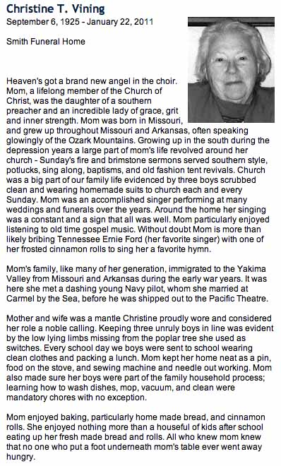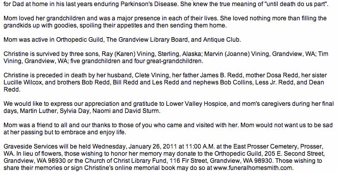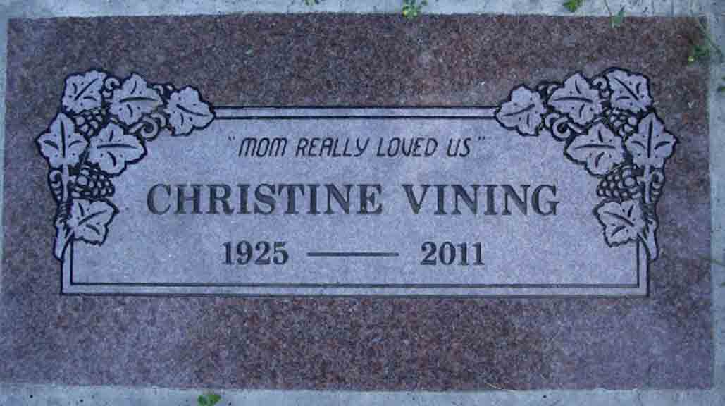 Gravestones for Cleatus R. Vining and Christine T. (Redd) Vining, in East Prosser Cemetery, Prosser, Benton County, Washington (from Find A Grave):