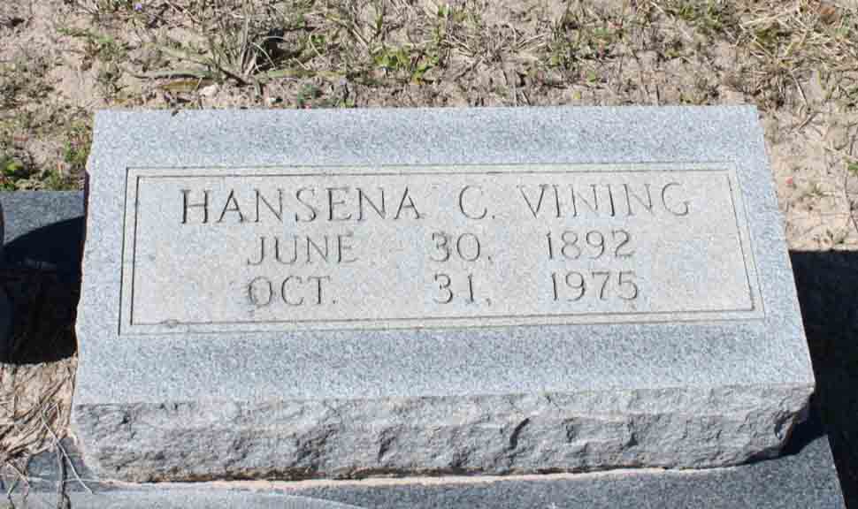 Gravestone for Hansena C. (Moonsen) Vining, in Shepherd City Cemetery, Shepherd, San Jacinto County, Texas (from Find A Grave):