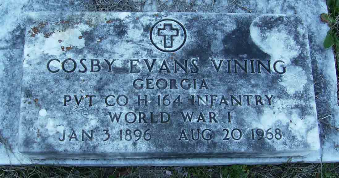 Gravestone for Cosby Evans Vining, in Marshallville City Cemetery, Marshallville, Macon County, Georgia (from Find A Grave):