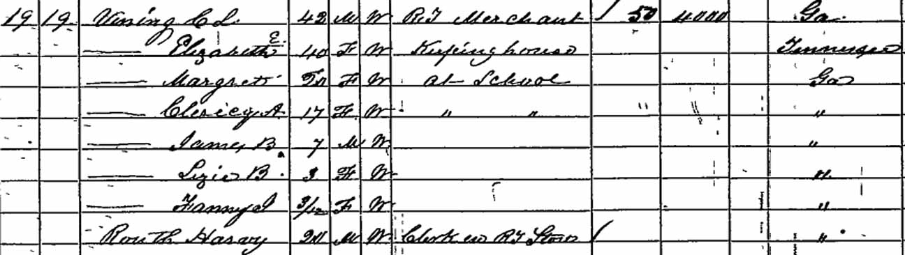 | James Benjamin Vining | 7 | 15 | ? | married and living in separate household | |||