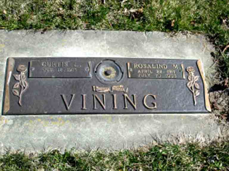 Headstone for Curtis L. Vining and Rosalind (Raymond) Vining, in Union Cemetery, Sumner, Jefferson County, Wisconsin (from Find A Grave):
