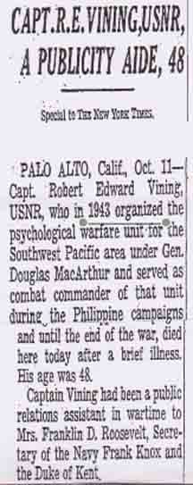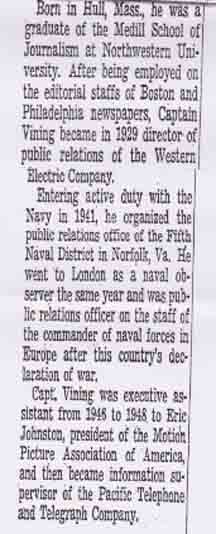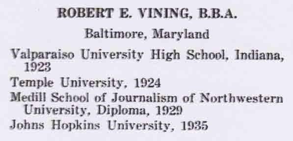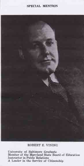 Robert Edward Vining . . . received special mention at the tenth annual graduation exercises (10 June 1937) of the University of Baltimore (Maryland).