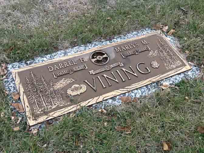 Headstone for Darrel Harley Vining and Marlys (Holm) Vining, in Sunset Memorial Gardens, Jamestown, Stutsman County, North Dakota (from Find A Grave):