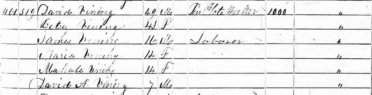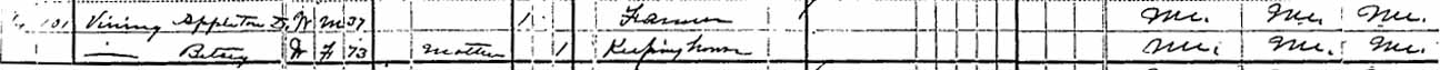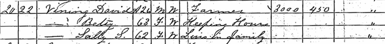 | Mahala S. Vining | ? | 14 | married and living in separate household | | | |
