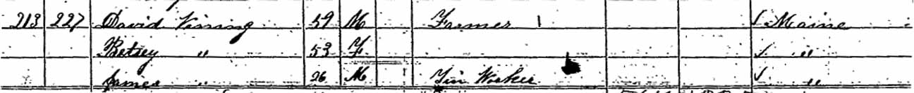 | Betsey (Smith) Vining | ? | 43 | 53 | 63 | 73 | dead |
