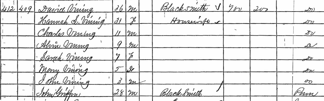 | Hannah L. (Green) Vining | 21 | 31 | ? | ? | ? | ? |