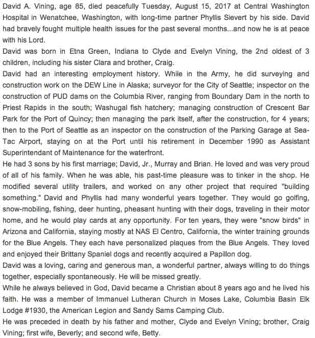 Obituary for David Allen Vining: