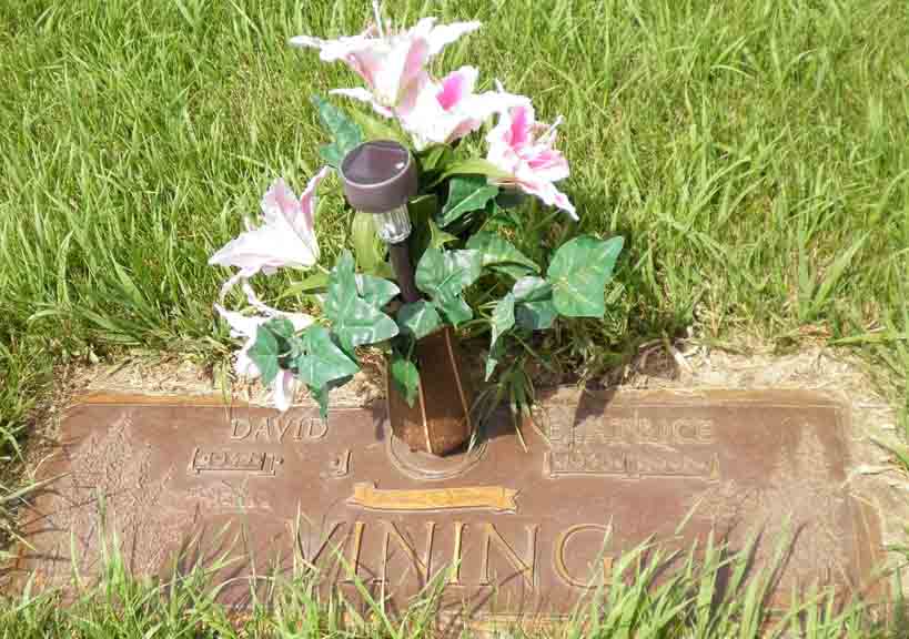 Headstone for David Burchim Vining and Beatrice (Orins) Vining, in Restlawn Memory Gardens, Huron, Beadle County, South Dakota (from Find A Grave):