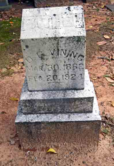 Gravestone for David Clayton Vining, in Larissa Cemetery, Mount Selman, Cherokee County, Texas (from Find A Grave):