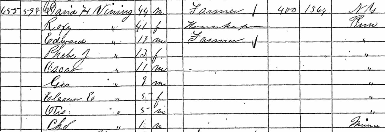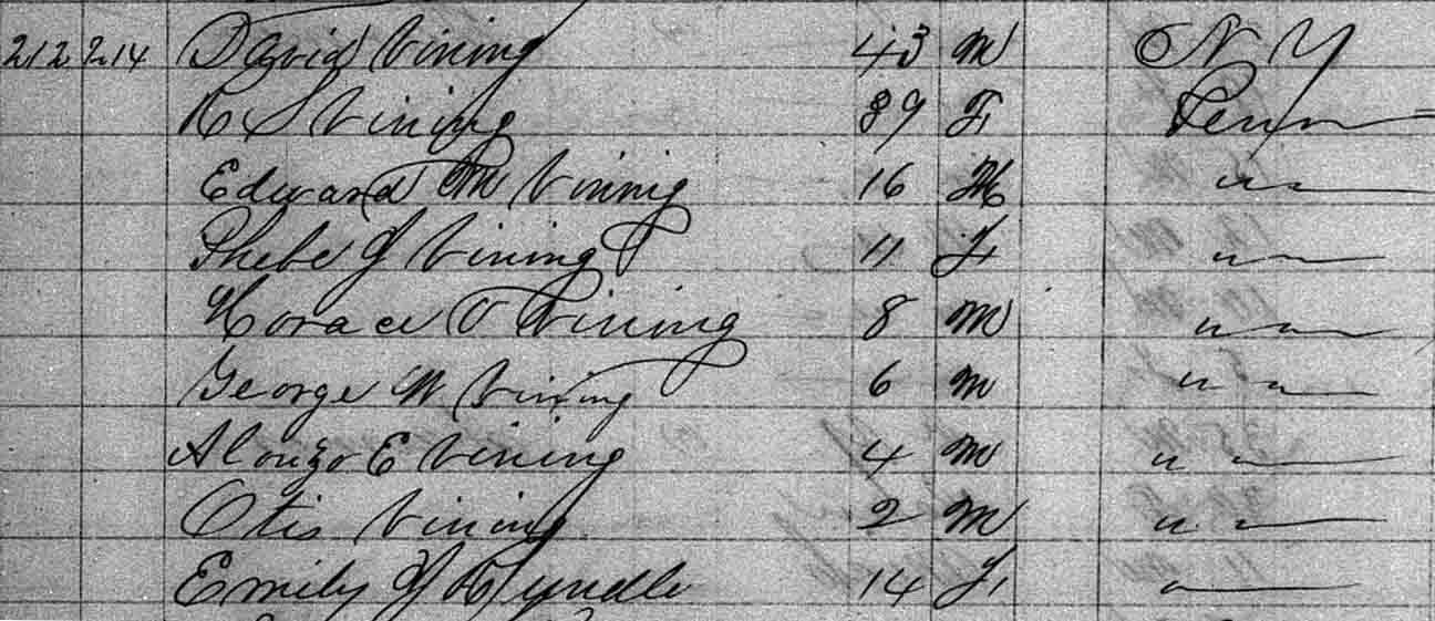 | Edward Milton Vining | 9 | 16 | 19 | married and living in separate household | |||